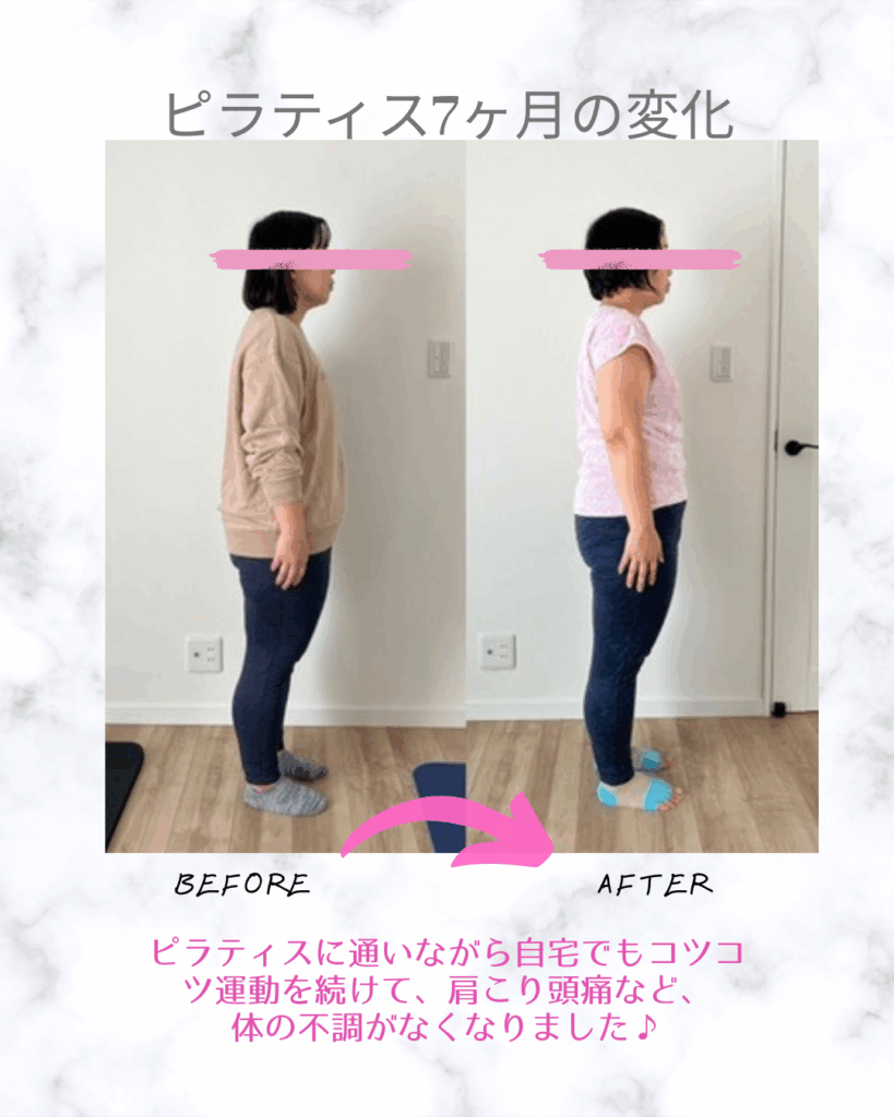 レッスンを重ねていくと不調が減り、不思議と身体への意識が上がり運動以外でも、例えば食事や睡眠の改善もされる生徒さんが多い印象です。