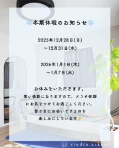 スタジオカケラの定休日は水曜日、祝日となっております。